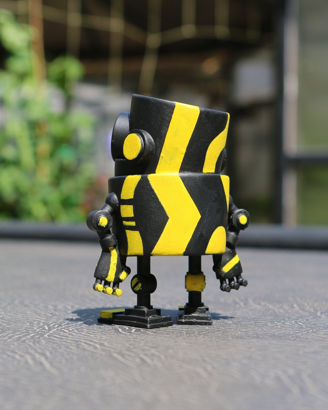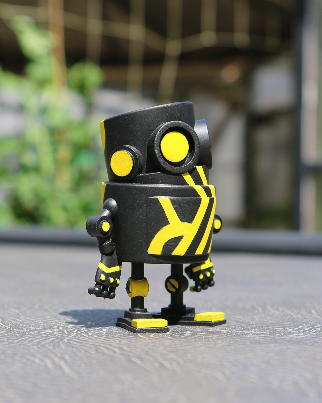 We all love some glam in our lives but how about Dazzle camo? Introducing the UMEdroid Dazzler! This version sports a bright yellow geometric camouflage. He stands around 3.5 inches tall is signed on the base and will ship in a header carded bag.
